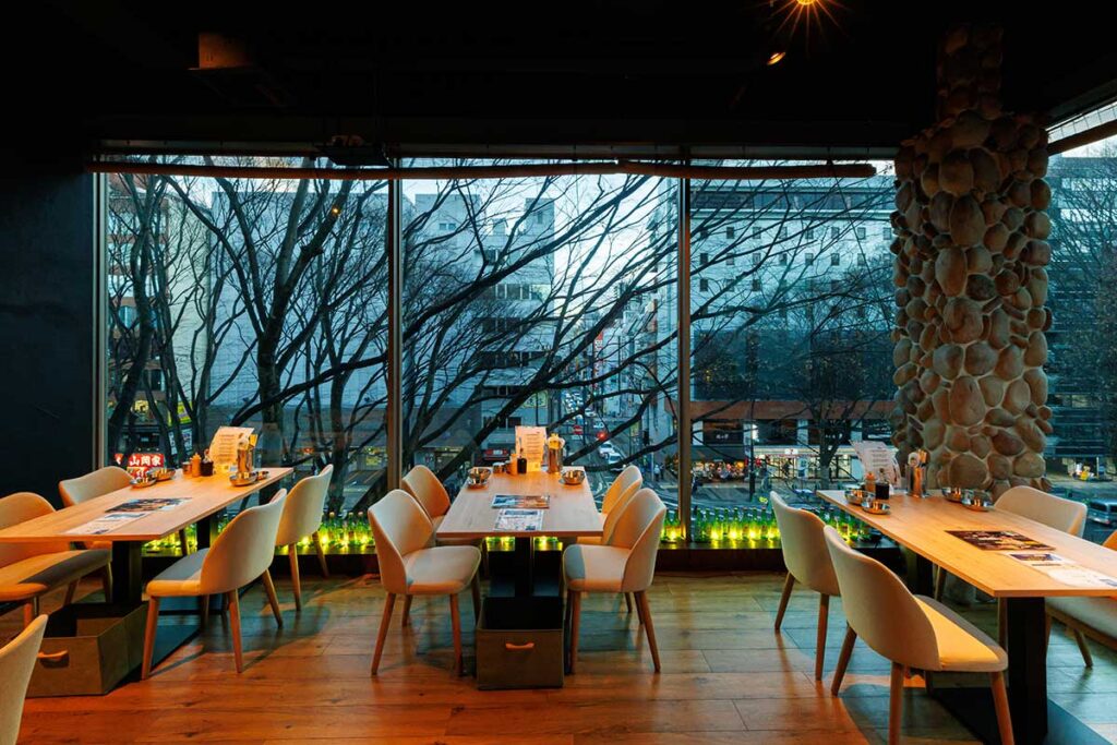 大きな窓からの景色も抜群。定禅寺通りのケヤキ並木が楽しめます。