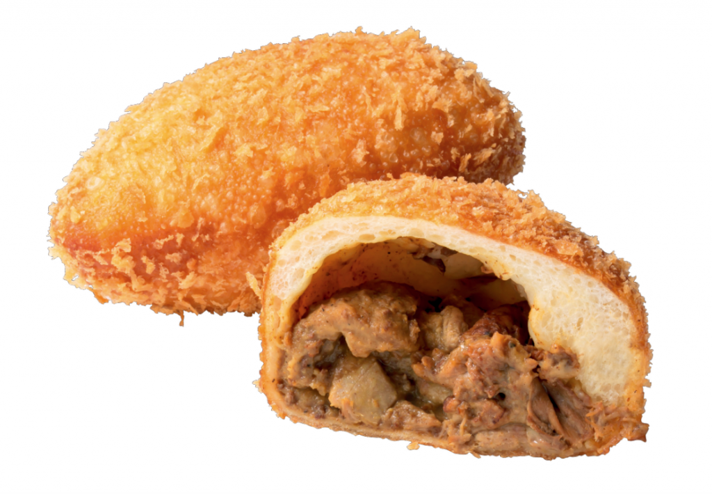 「牛すじと牛タンの揚げカレーパン」(324円)。上質な牛スジ肉と牛タン、スパイシーなカレーがたっぷり。おいしさと共に程よい辛さが後を引く