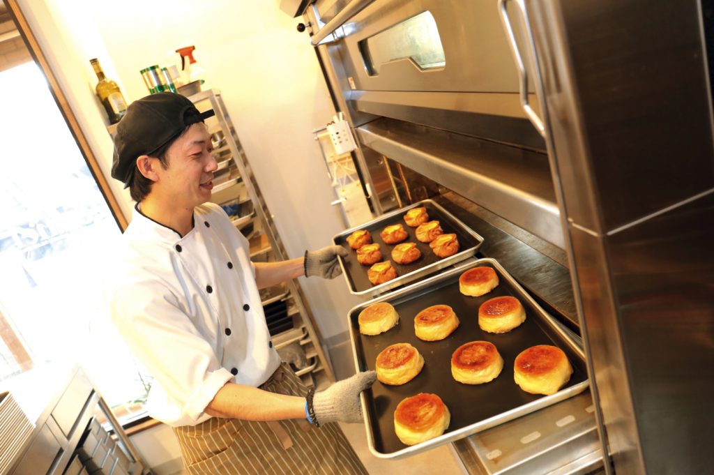 工房の上杉店でテキパキとパン作りに取り組む山下さん。「お客様の日常に、休息と話題を提供できるパンを作っていきたいです」