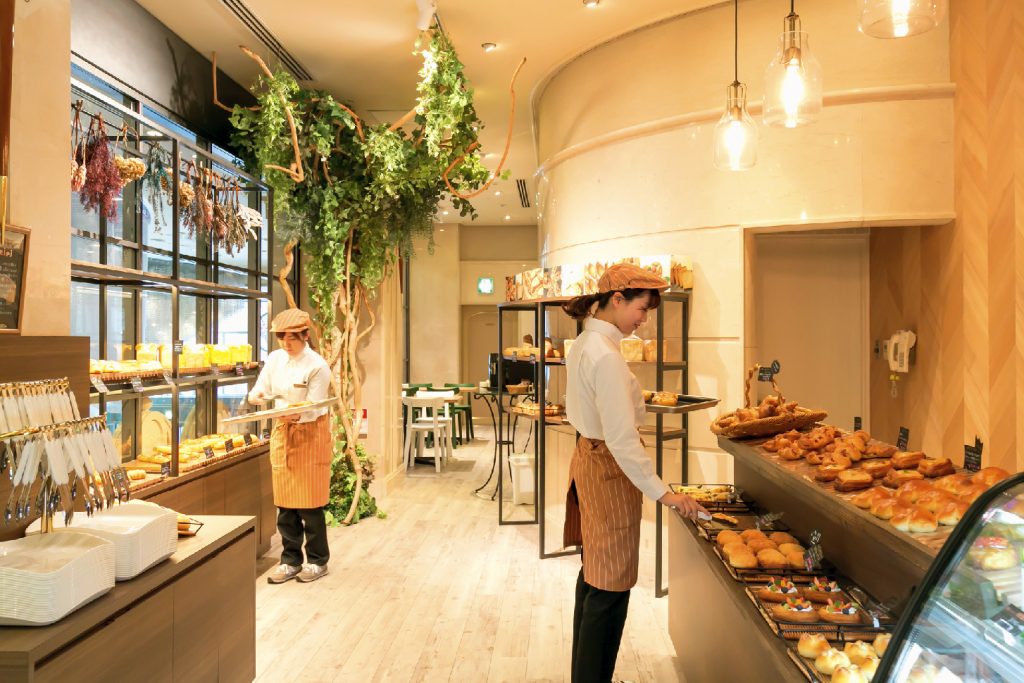 ナチュラルな雰囲気の店内。イートインのほか、店舗横のカフェラウンジでは店頭のパンと合わせたランチセットも楽しめる