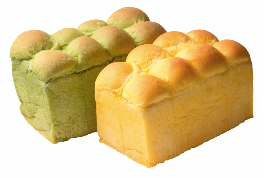 「豆乳仕込みのにんじんパン(右)・ほうれん草パン(左)」(一斤 各432円)。鮮やかな色が楽しいひと品。野菜ならではの色味としっとりした口当たりが特徴だ