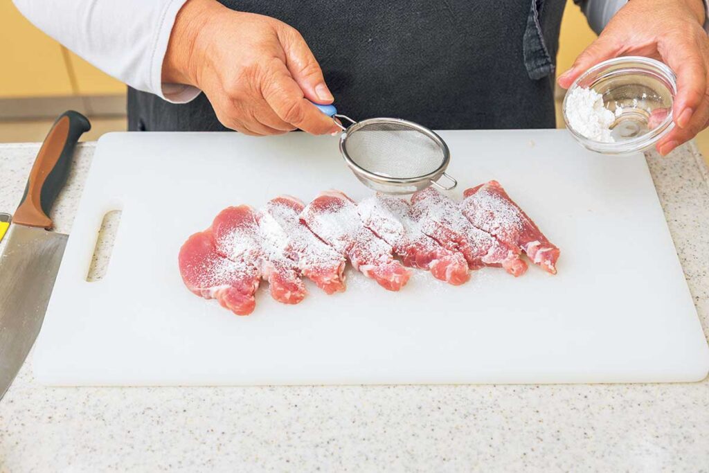 (※2)ヒレ肉に小麦粉をまぶしておくことで照り焼きのタレが絡みやすくなります