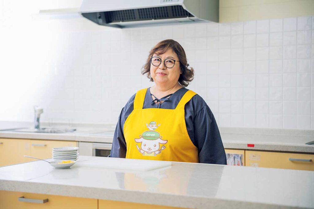 レシピ考案/料理研究家・食生活アドバイザー・千葉静さん。主に宮城県石巻市を中心に活動し、キッチンスタジオじゃんぷでコープ商品を使用した簡単レシピ教室を主宰。和洋中のジャンルを問わないお手軽レシピは、忙しい主婦・メンバー(組合員)から大好評。