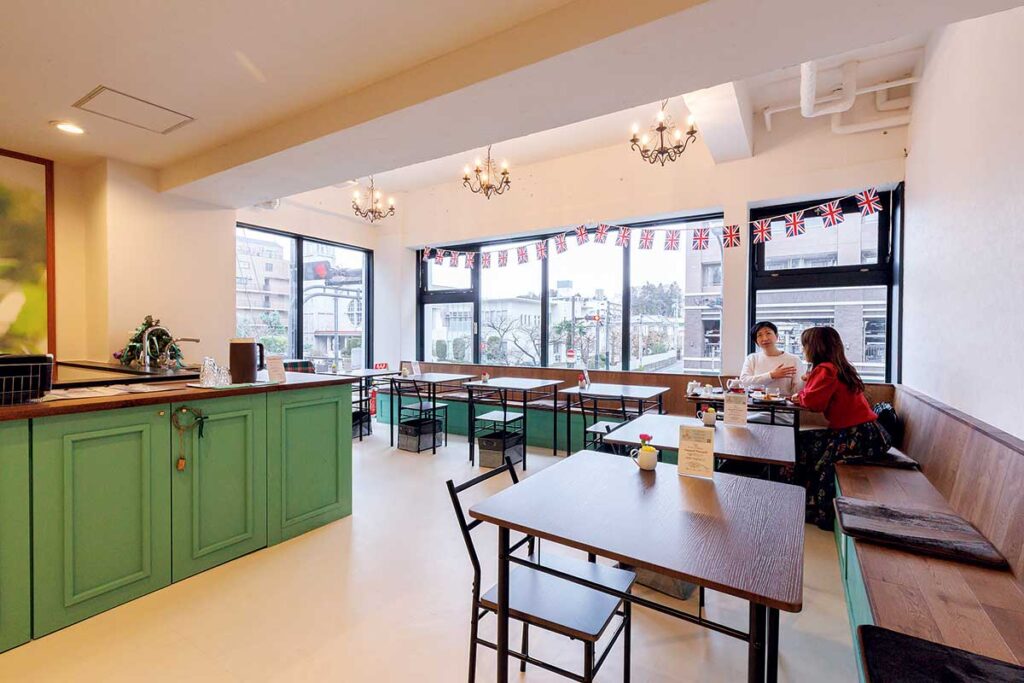 2階建ての店内もとっても素敵な空間で、1階はスタンドで気軽に紅茶が楽しめるカウンター、2階は大きな窓が印象的なゆったりとしたテーブル席になっています。