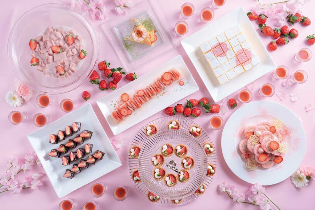 こちらでは3月2日(月)から5月1日(金)まで、「イチゴと桜」をテーマにしたやさしい色合いのスイーツに加え、ブッフェスタイルでサラダやスープが楽しめますよ。