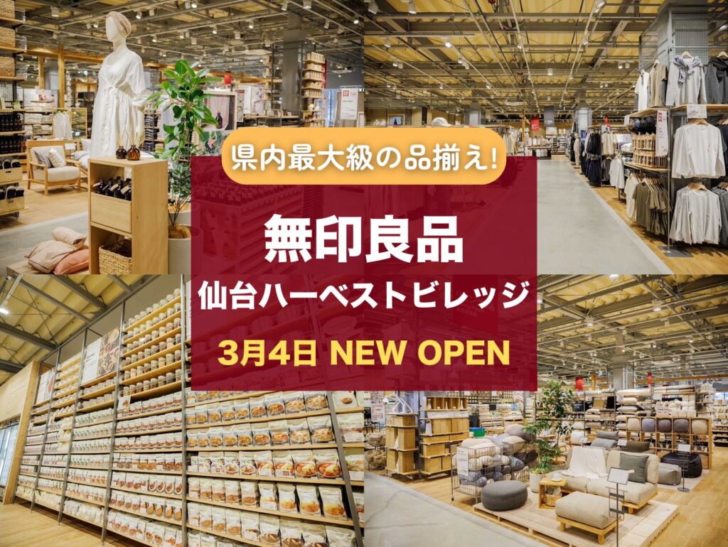 仙台市若林区にある複合施設『仙台ハーベストビレッジ』内に、『無印良品 仙台ハーベストビレッジ』がオープンしました!
