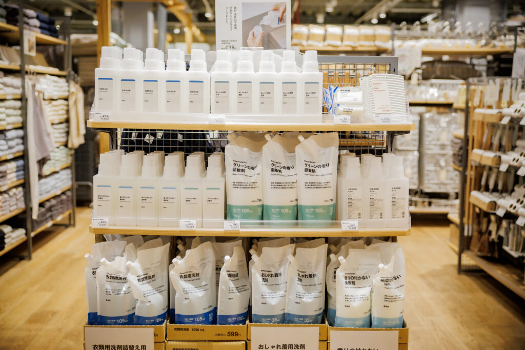 清掃用品や洗剤などの日用品も、圧倒的なバリエーション