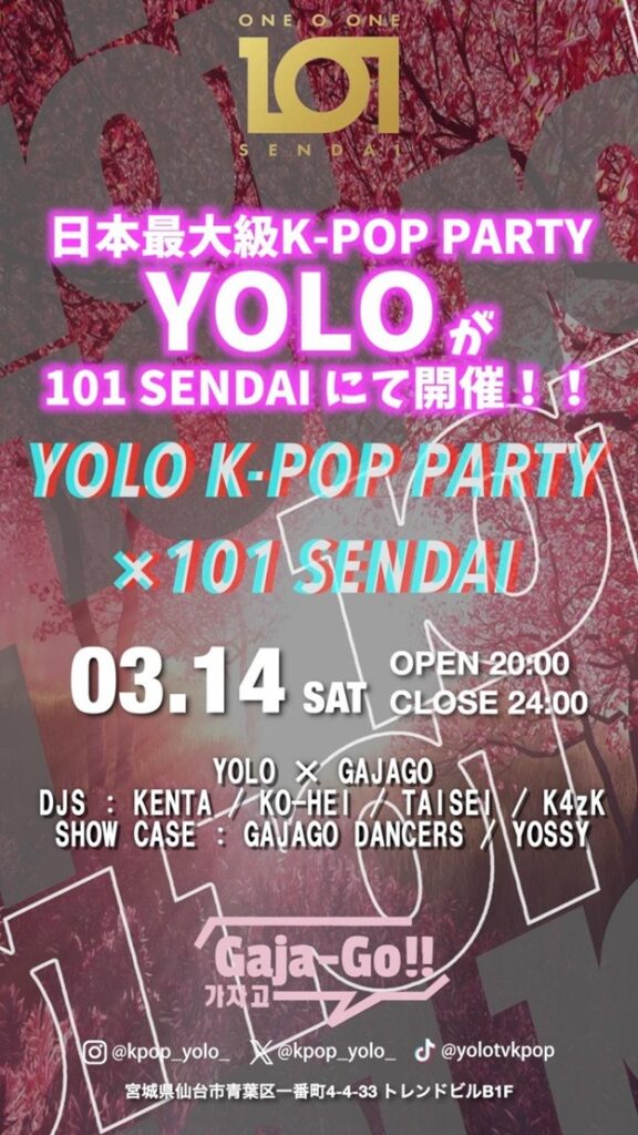 『YOLO K-POP PARTY×101SENDAI suppoted by Gaja-Go-!!』