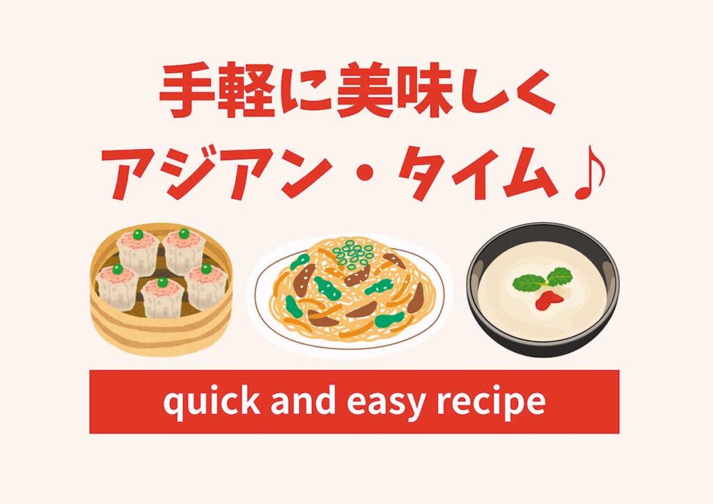 中華と韓国の融合でアジアン・タイム。忙しい日でもひと口で笑顔に♪ホタテ入りシュウマイ、チャプチェ、杏仁豆腐などを作ります。