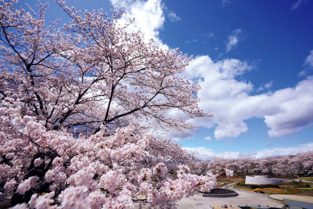 広々とした園内では、約1,400本の桜が春の訪れを告げる