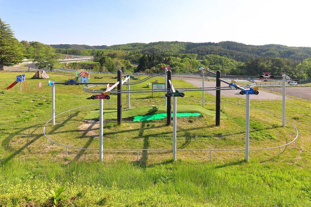 敷地内にはレールウェイやシーソーなどの遊具も充実。レースの合間に、子どもたちも夢中になって遊べる
