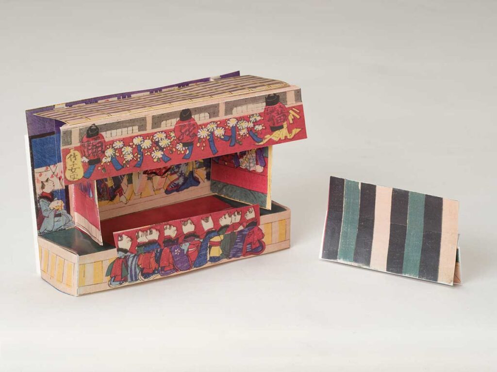 人のような猫が描かれたペーパークラフト「猫の踊り」(個人蔵)をはじめ、当時のおもちゃの復元品に触れられるコーナーも登場!