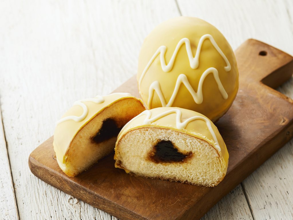 “イースターエッグ”をモチーフにしたデコレーションで、見た目はもちろん、カスタードテイストのコーティングでイースターをさらに盛り上げるひと品。もちふわ生地の中にはほろ苦いカラメルフィリング、まるでカスタードプリンのような味わいのドーナツ!