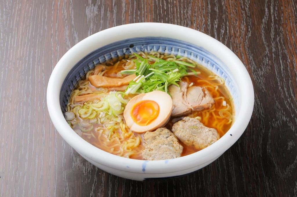気仙沼市民に30年以上愛される店の看板メニュー。サンマ節を中心に、煮干やカツオ節を加えたあっさりながらも奥深い味わいのスープが自慢だ。煮卵やチャーシューなどラーメンに外せない黄金具材が並ぶ中、ひと際目を引くのが気仙沼産のサンマを使ったつみれ、サンマの旨みをギュッと凝縮した濃厚な味はリピート必須!