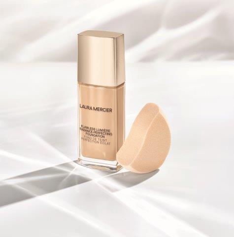 誰でも簡単にプロのような仕上がりでできるのがローラメルシエのラインナップの特徴。目元には、ひと塗りで上品なきらめきが実現できる「キャビア クローム ヴェイル ラウトウェイト リキッド アイカラー」を。重ねて「キャビアスティック アイカラー」をブラシでぼかせば完成、という簡単さがうれしいです。今年は、ベージュやグレージュトーンの洋服が流行っているので、メイクもトーンを合わせると一気に洗練されたワントーンコーディネートが完成されるそうですよ。