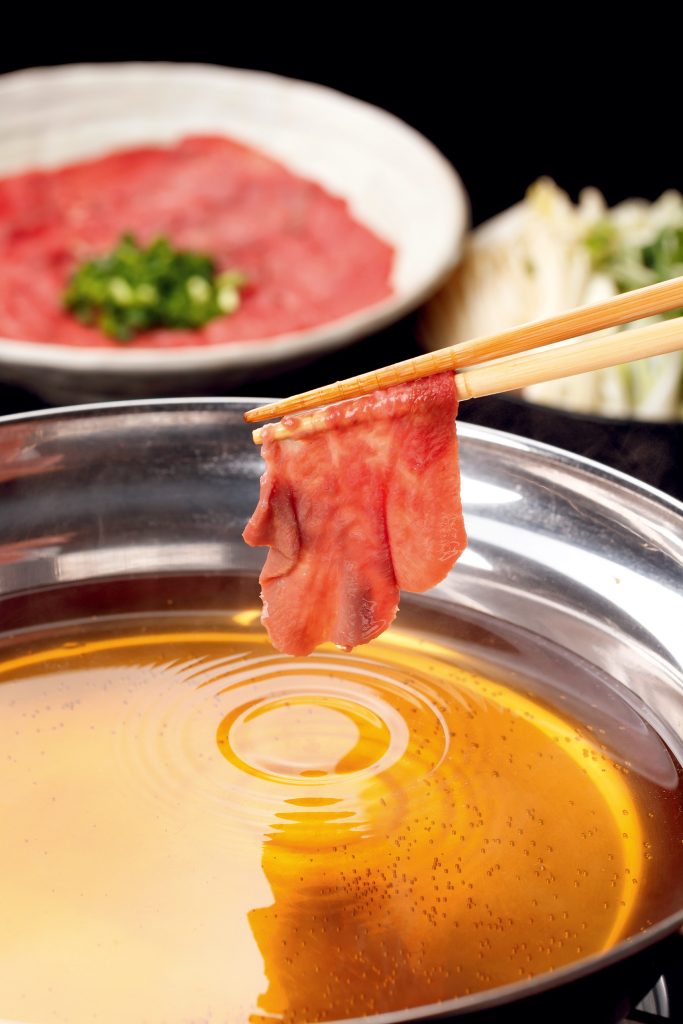 炉端焼きのほか、牛タンのしゃぶしゃぶを楽しめるのも人気の理由。オリジナルのポン酢ダレでどうぞ