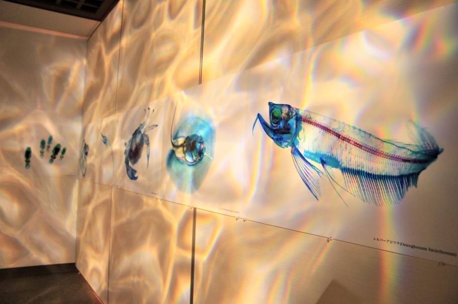 まるで水中にいるかのような柔らかな光でライトアップされた透明標本もきれいですね