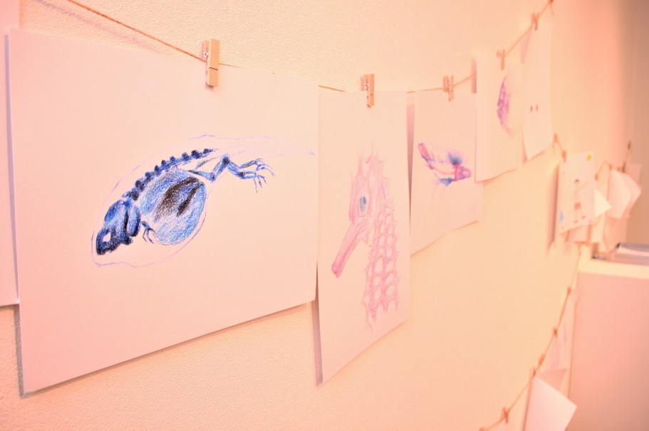 展示を楽しんだ後は「お絵描きコーナー」で、お気に入りの透明標本を描いてみましょう!