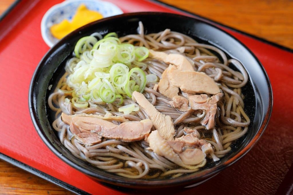 『一寸亭本店』で修行を積んだ店主の吉田さんが営む『そば吉』。そのルーツは修行店にあれど、なんと言っても最大の特長は70cmを超える長いそば。実はその長さこそが、肉そばが生まれた頃の本来の姿だそう。昔ながらを受け継ぐコシのある太麺は、少し箸に取るだけで食べ応え十分! 親鶏の旨みがたっぷりしみ込んだつゆにくぐらせて、ズルズルと豪快にすすろう。