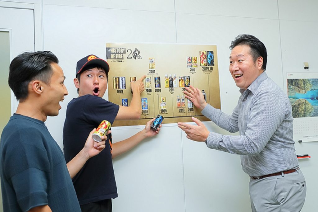 まずは「キリン ファイア」20年の歴史をお勉強。味への追求はもちろん、表面が凸凹になったダイヤカット缶の採用やペットボトルコーヒーの発売など、常に変化し続けてきたことがわかります。