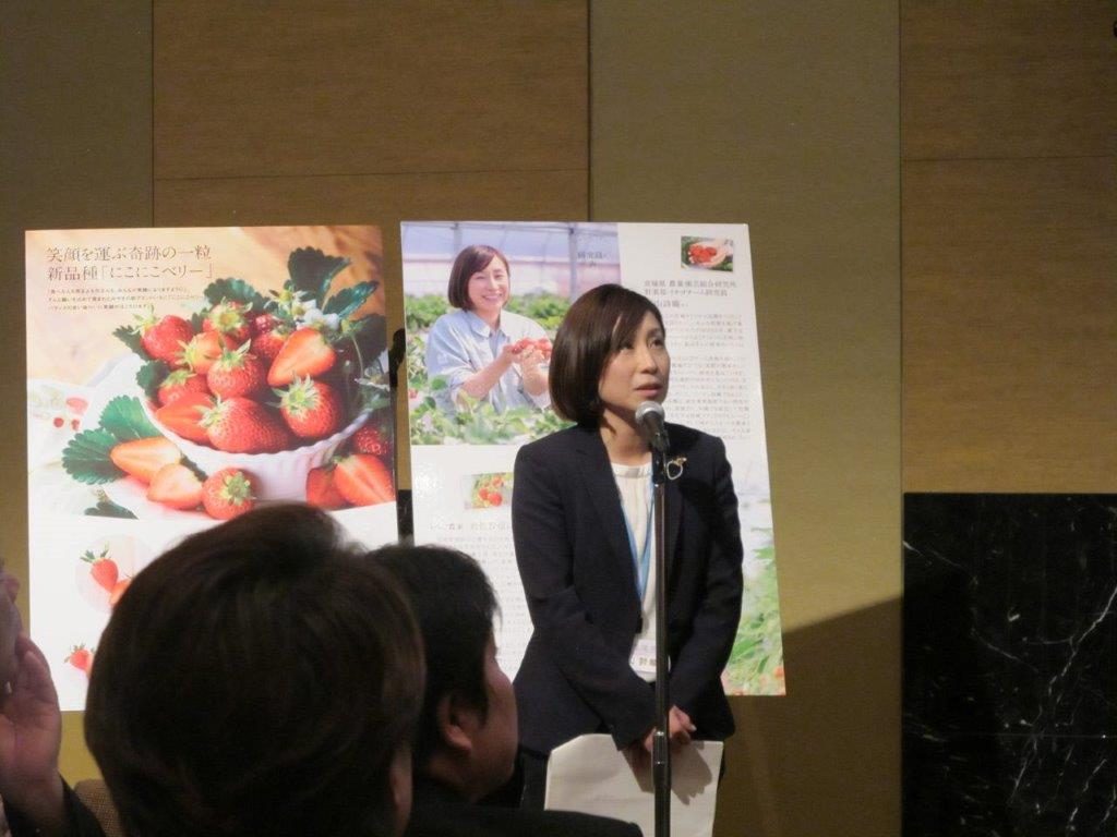 11月22日(金)には、「にこにこベリー」のデビューイベントが開催されました。宮城県内の菓子店パティシエたち、流通関係者、一般消費者、宮城県知事、開発者などが参加し、「にこにこベリー」のデビューをみんなでお祝いしました。