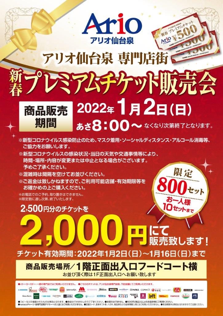 「アリオ仙台泉 専門店街 新春プレミアムチケット販売会」
