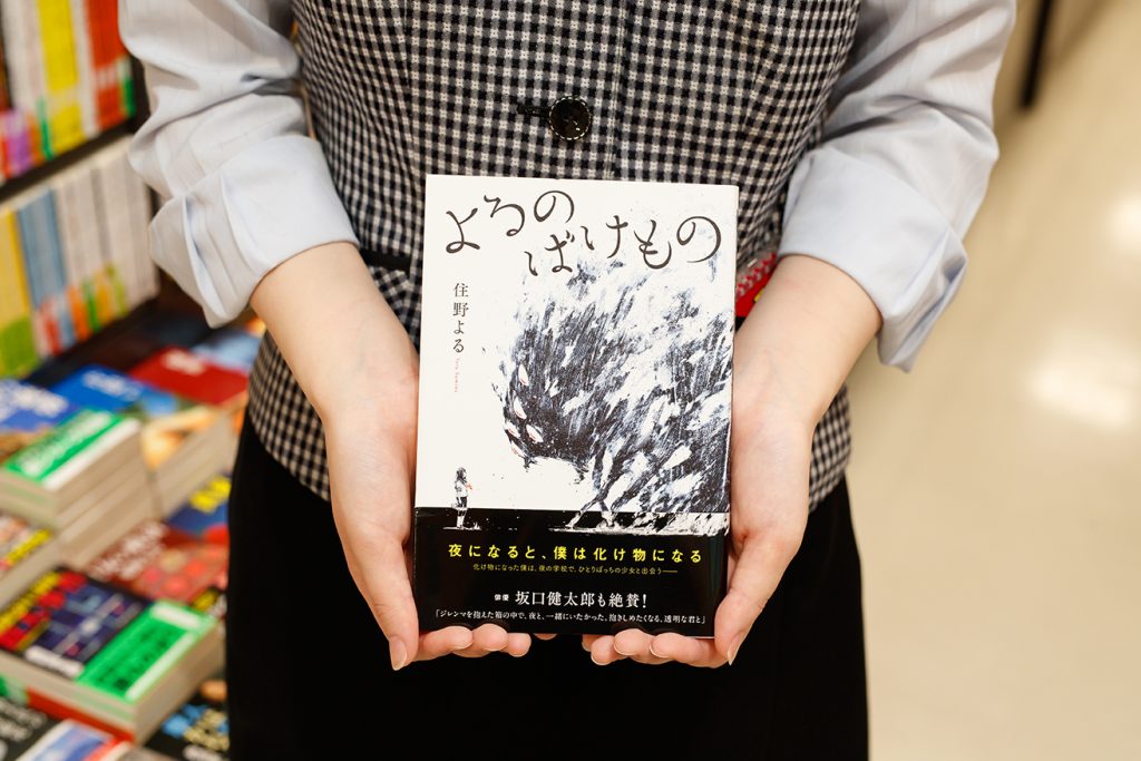 続いては、『君の膵臓を食べたい』が話題を呼んだ作家・住野よるの『よるのばけもの』。「住野よるさんは好きな作家のひとりです。先生の新作が発売されたということで手に取ったのがきっかけですが、まず驚いたのが、装丁のこだわりっぷり。1ページ1ページめくるたびに、丁寧に作られているのを実感する仕掛けがされているんです。内容ももちろんおもしろいですよ。主人公は夜になると❝ばけもの❞になってしまう青年。ある日、忘れ物を取りに化け物の姿で夜の学校へ忍び込みます。誰もいないと思っていた教室に入ると、なぜかクラスメイトがいて物語は急展開。高校生のみなさんならきっと共感できるはず、という内容になっています。装丁を楽しむためにも、ぜひ手に取って読んでみてはいかがでしょうか」。