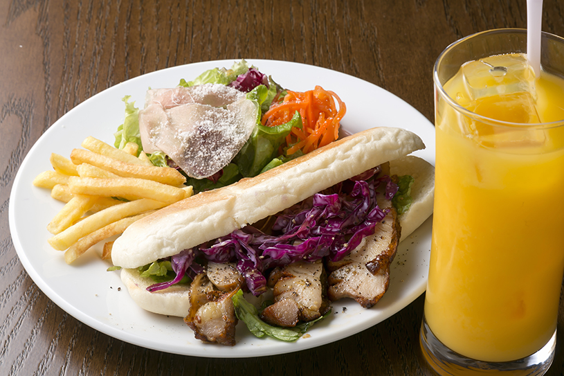 『デーデのパン』で特注したパンを使用した「パニーニランチ」(950円)。この日はスパイシーチキンをサンド