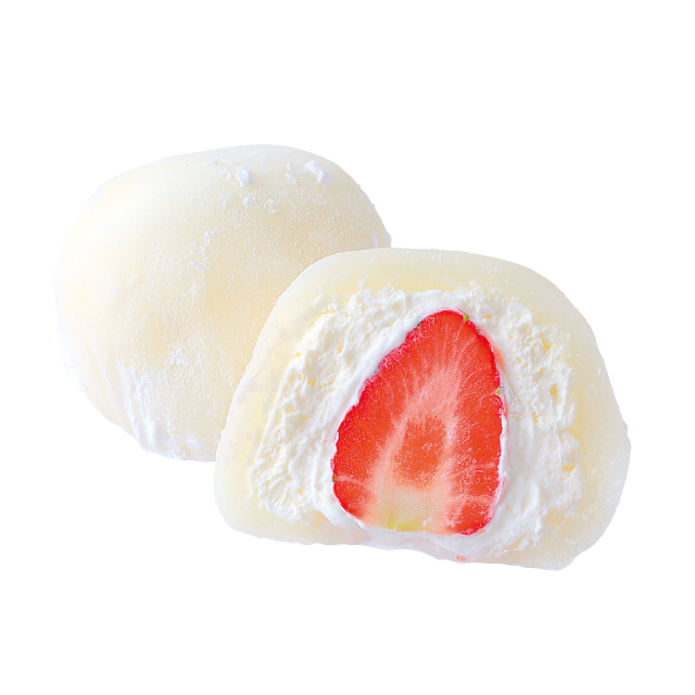 やわらかい求肥にたっぷりの生クリームとにこにこベリーがまるごと一粒包まれた大福。食べごたえ抜群なので、豪快に頬張ってみて。