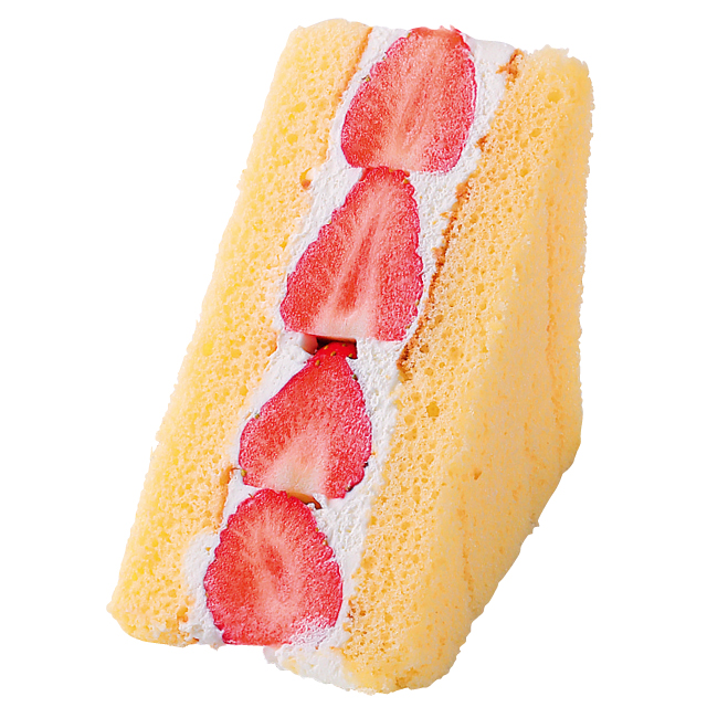 にこにこベリーの特徴である鮮やかな断面を活かしたサンドイッチ。にこにこベリーの酸味と上品な甘さの生クリームがよく合う。