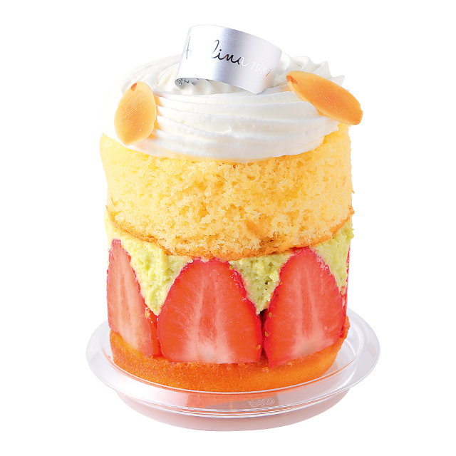 にこにこベリーの果肉の断面を美しく魅せ、濃厚なピスタチオのバタークリームににこにこベリーの酸味がマリアージュした春らしいひと品。