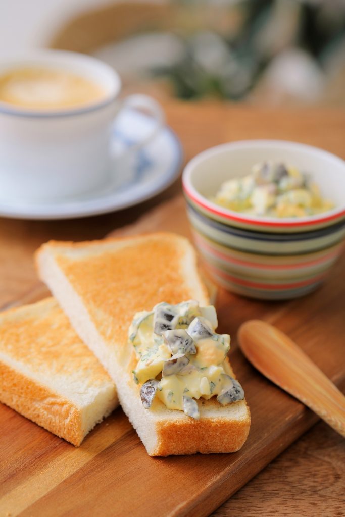 そんな彼が考案してくれたのは、しば漬けとワサビがアクセントの「和風しば漬けタルタルトースト」。