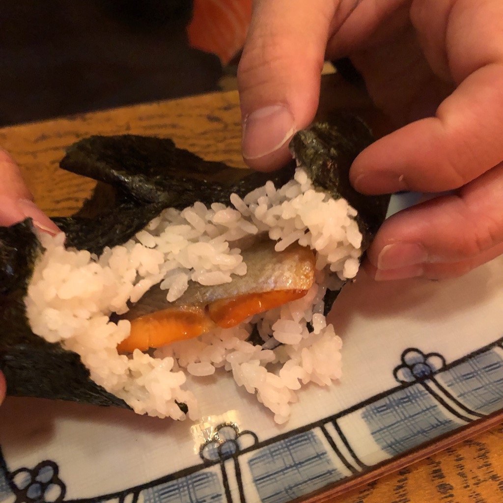 おむすび「銀結び」。生の銀王もおいしいけど、焼いても美味し