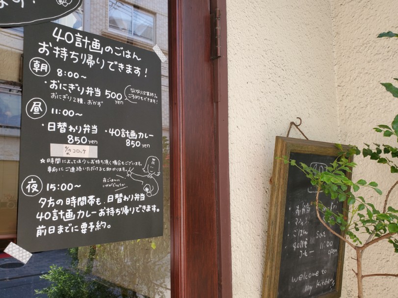 11:00からは、曜日替わりの「日替わり弁当」(850円)と「40計画カレー」(850円)を販売。そのほか、8:00からはおにぎり弁当を、15:00以降も予約をすればお弁当を購入できるので、朝、昼、夜と、生活スタイルにあわせて楽しめますよ。お弁当はなくなり次第終了、事前に予約&受け取り時間を連絡しておくと、受け渡しもスムーズで安心です。
