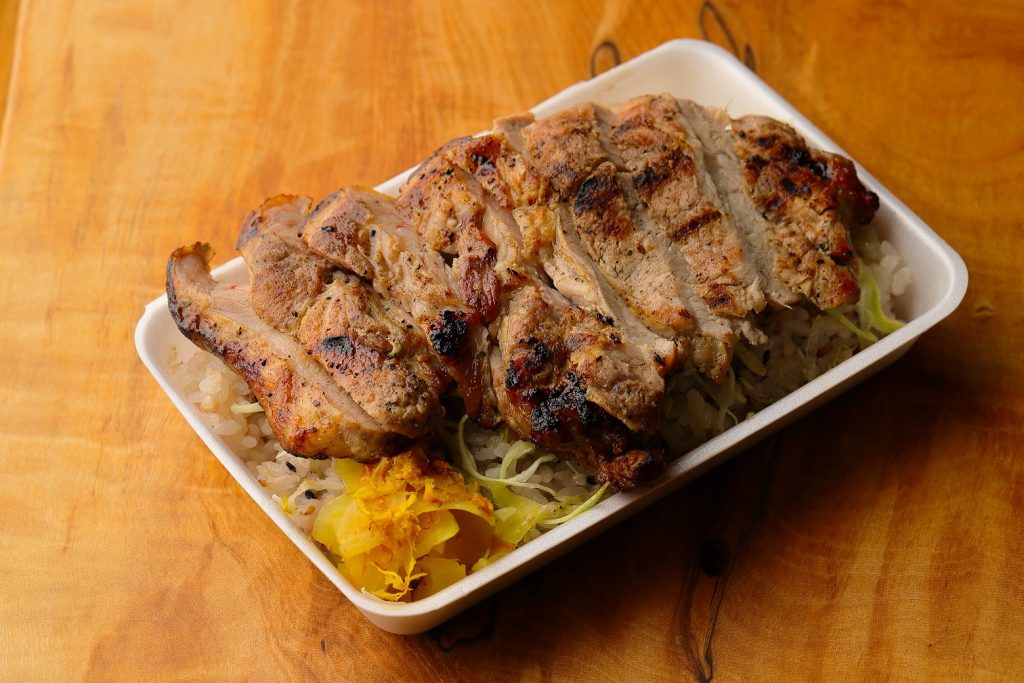 湧水豚のステーキ重(850円)※仕入れによっては提供しない場合あり