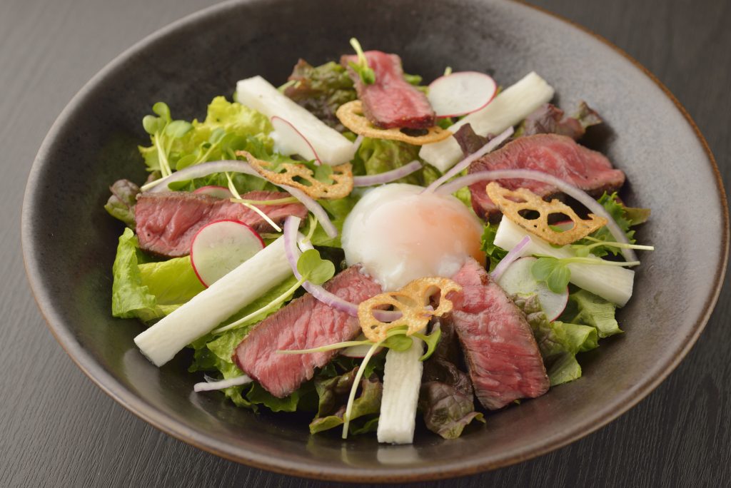 「炙り仙台牛のサラダ仕立て」(1,738円)。炙ることでジューシーな仙台牛の旨味が際立つ逸品!