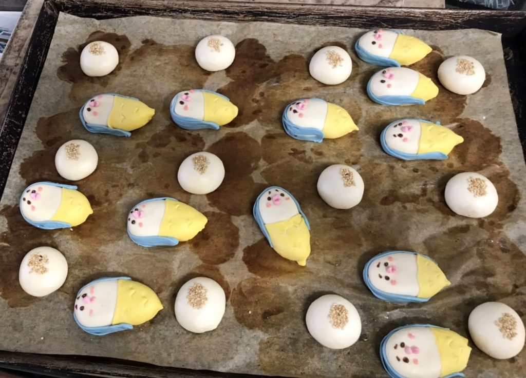 こちらが『MonaMona』さんの「あまびえパン」。つぶらな瞳とくちばし、ピンクのほっぺが可愛すぎますね。さすがは今まで数々の胸キュンキャラクターパンを生み出してきた人気店ならではの仕上がりです。青い髪(?)やウロコ(?)も再現性◎です。