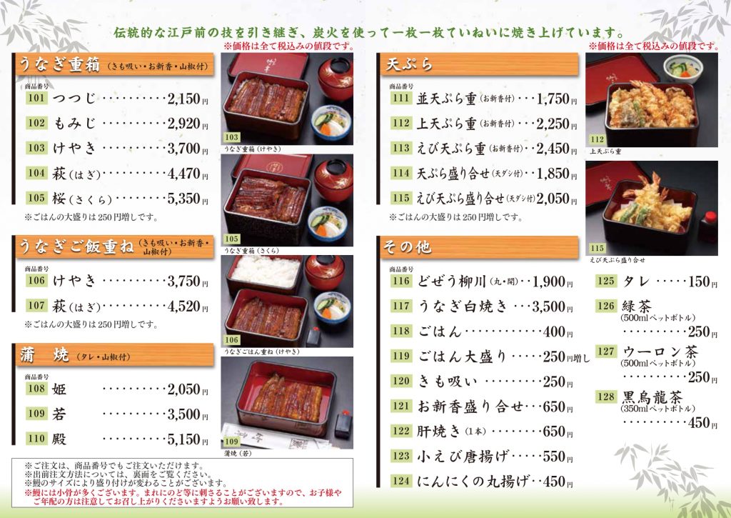http://www.unagi-chikutei.jp/menu.php