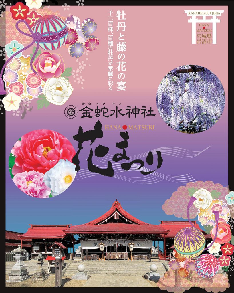 “水清き花の杜”とも呼ばれる『金蛇水神社』にて、1,200株100種の牡丹が境内を鮮やかに飾ります。また、1本の株から9本に枝分かれする樹齢300余年の「九竜の藤」も必見です。5月15日(火)~21日(月)は春季例大祭も開催されるので、春の“花の宴”にぜひ参加してみましょう。