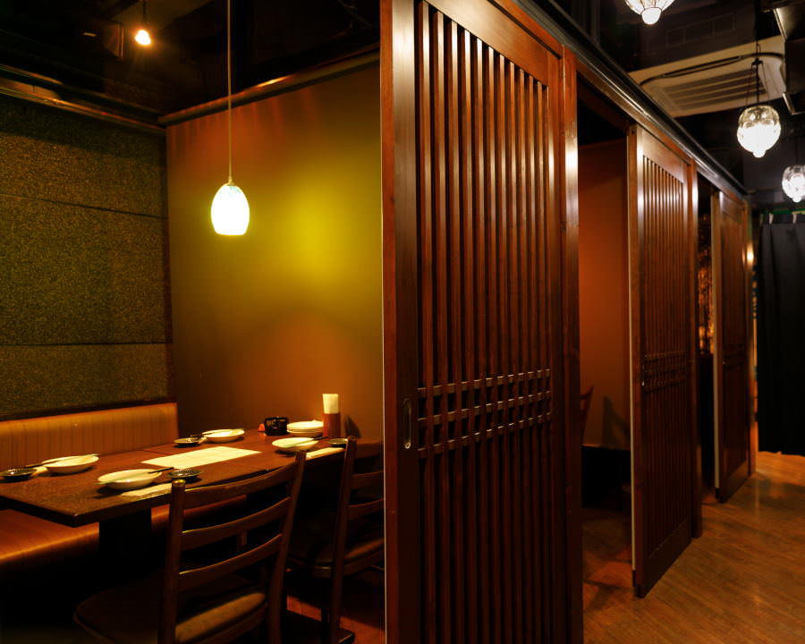 気兼ねなく過ごせる半個室のある店内。やさしい灯りが落ち着きますね~
