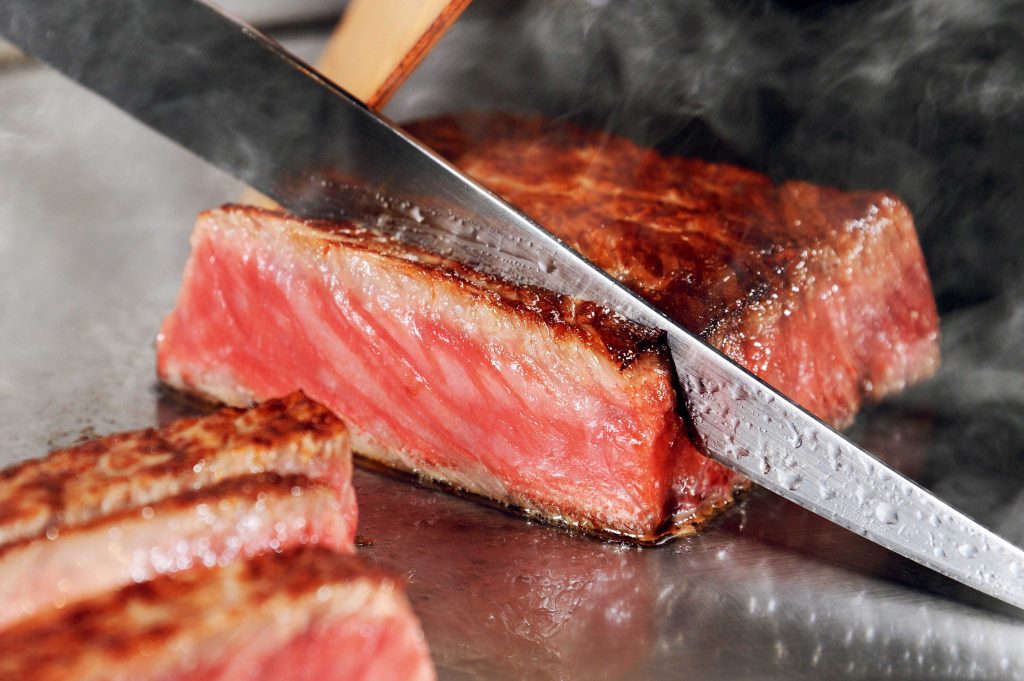 目の前で専属シェフが仙台牛をはじめ料理を仕上げるプレミアム感がたまらない『すていき小次郎』。お肉を焼く際には、カチカチという音が会話の邪魔にならないようにと木べらを使用したり、シェフが一人ひとりの食事のペースに合わせてお料理を提供してくれるといった心遣いは、まさに「一客一亭」の精神が息づいています。さすが、創業36年の老舗。こういったおもてなしが常連さんの心をがっちり掴む秘密なのかもしれません。