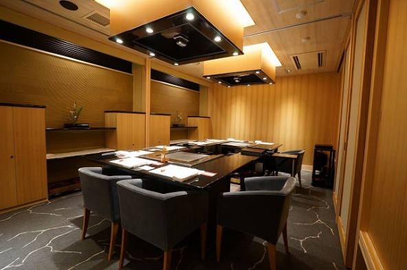 2階の個室は4名から対応OK。鉄板付きの個室では、専属シェフが目の前で料理を仕上げてくれます