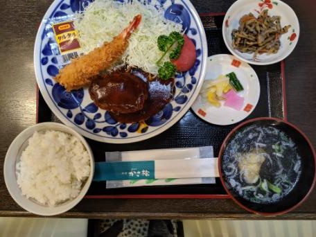 仙台牛メニューはまだまだ!こちらは「仙台牛のハンバーグと海老フライの定食」(1,500円)
