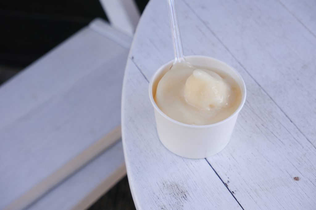 私がチョイスしたオリジナルのリンゴジェラートは、シナモンが効いていておいしい!フレンチトーストにのせて食べたいお味。しかし頑張って撮影しているうちに、どんどん溶けてきてしまいました…
