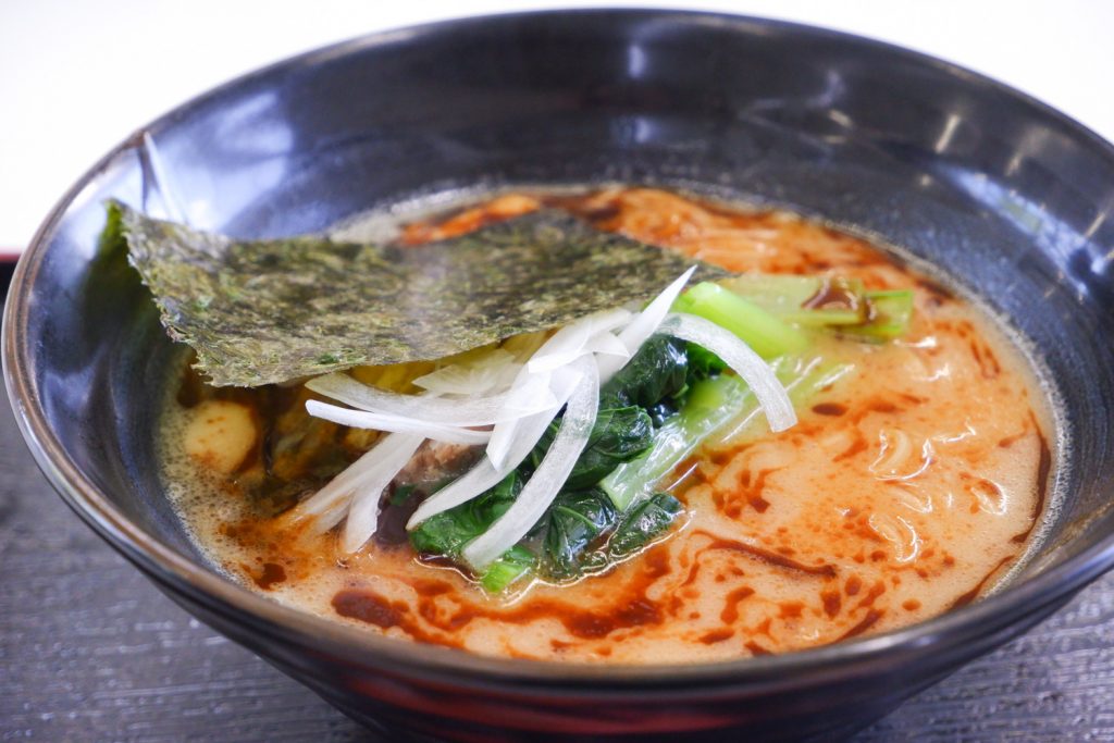 敷地内にある食堂『仙台とんこつラーメン 一番堂』の自慢はラーメンとパスタ。気分で選べるのがうれしいところですね。私は運動した後でとても空腹だったので、おいしそうな「マー油豚骨」をセレクト。マー油のコクがしっかりと感じられ、とても本格的です!